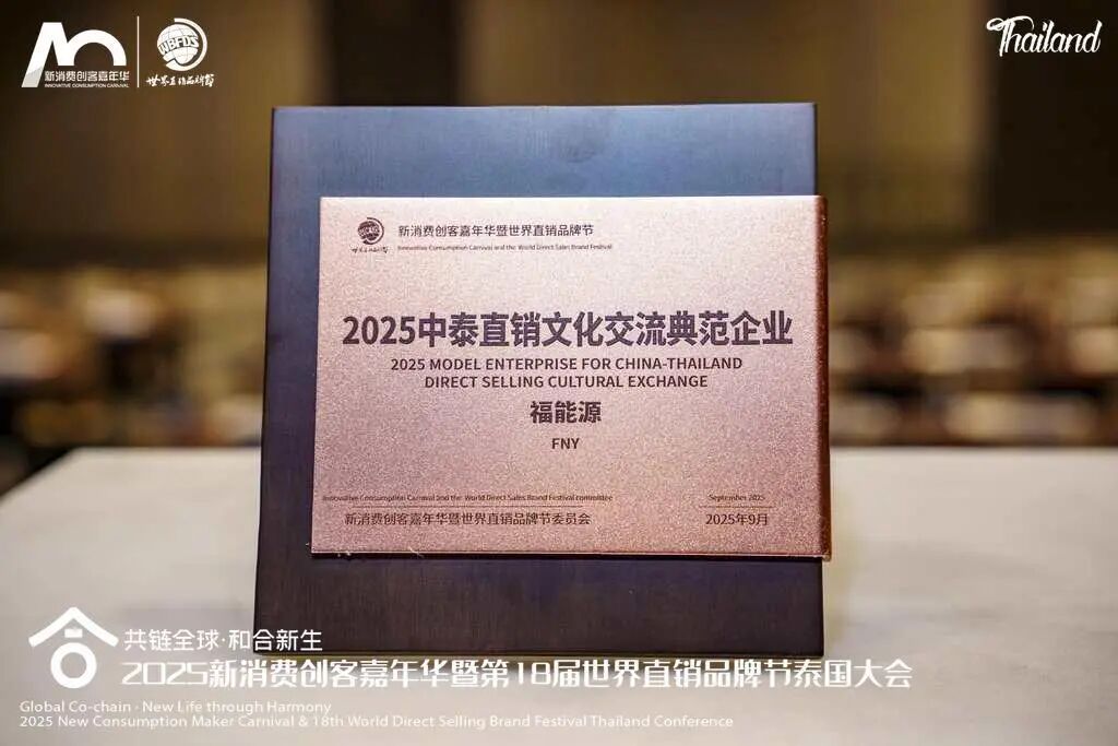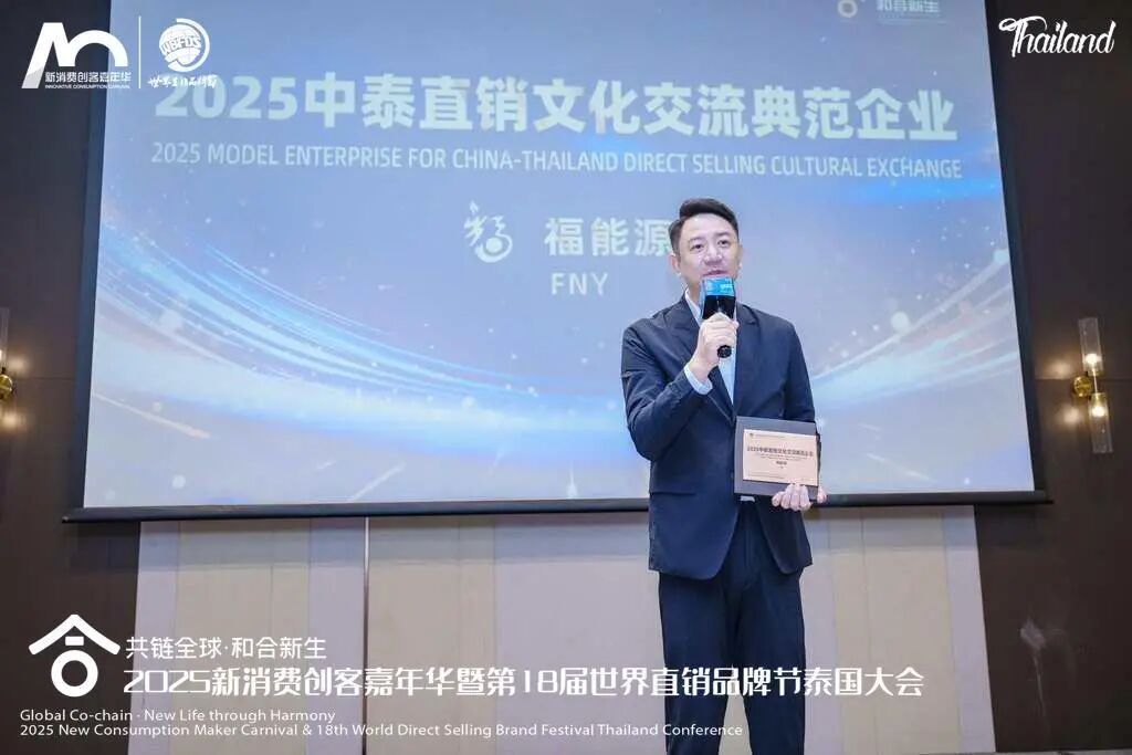 會(huì)議期間,李南總裁與嘉賓共同開啟了“2025新消費(fèi)品牌節(jié)暨第18屆世界直銷品牌節(jié)泰國(guó)大會(huì)啟動(dòng)儀式”。福能源更是憑借多年來(lái)在泰國(guó)持續(xù)開展高品質(zhì)海外交流活動(dòng),推動(dòng)中泰大健康文化交流的實(shí)踐,被授予“2025中泰直銷文化交流典范企業(yè)”榮譽(yù)稱號(hào),李南總裁代表公司領(lǐng)獎(jiǎng)并發(fā)言。