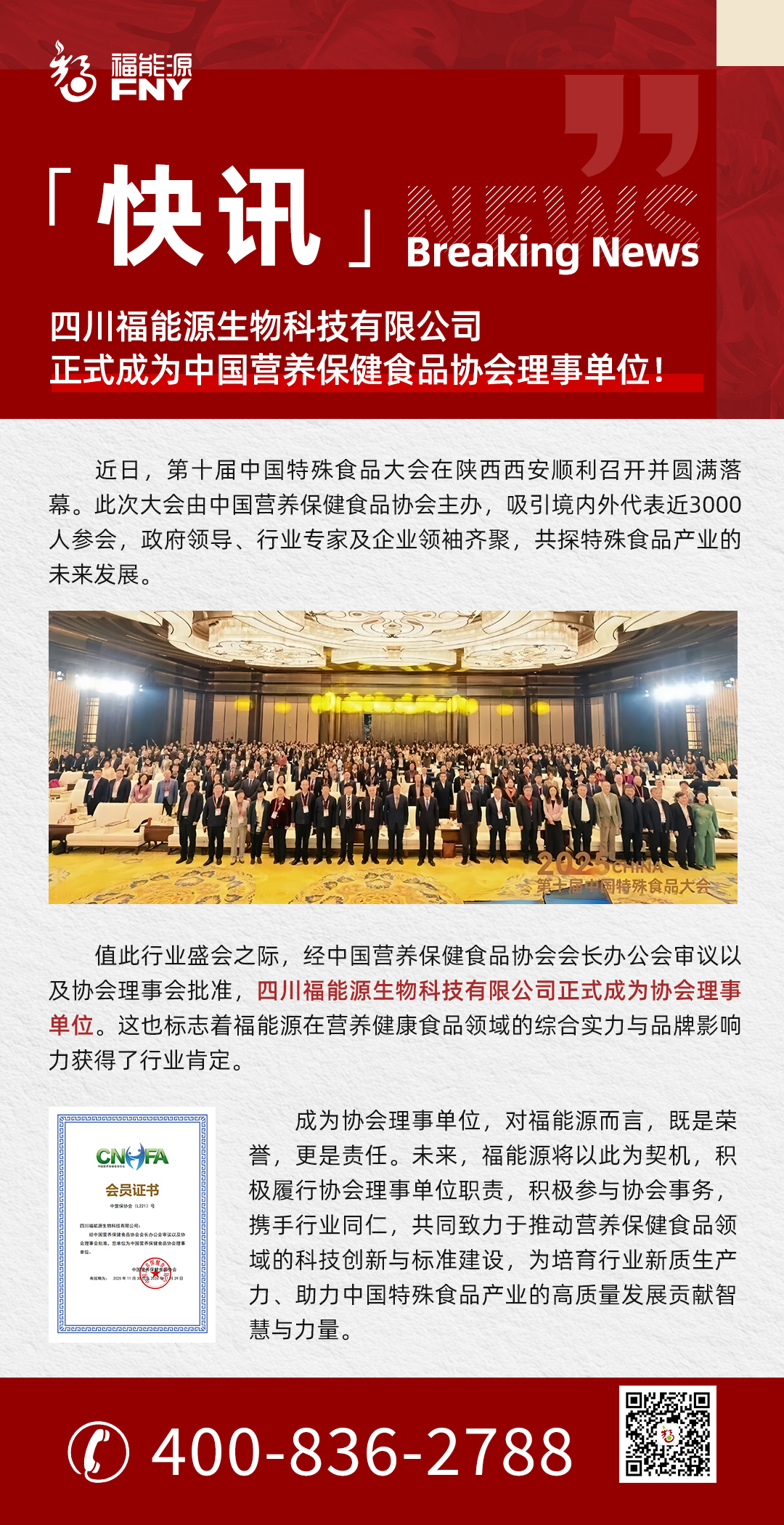快訊 | 四川福能源生物科技有限公司正式成為中國(guó)營(yíng)養(yǎng)保健食品協(xié)會(huì)理事單位!